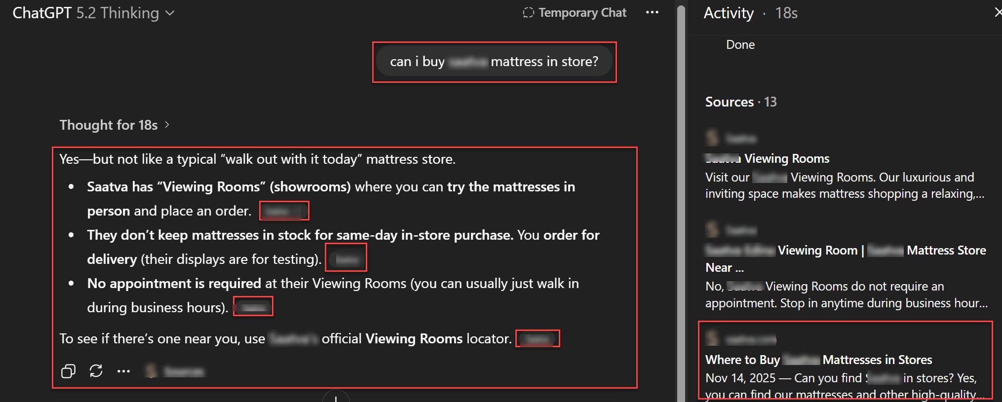 One simple example: “Is [Brand] sold in stores?” They started online-only, but recently opened physical locations. Customers were already asking, yet the web still reflected the old narrative. And LLMs will repeat outdated info if you let them.