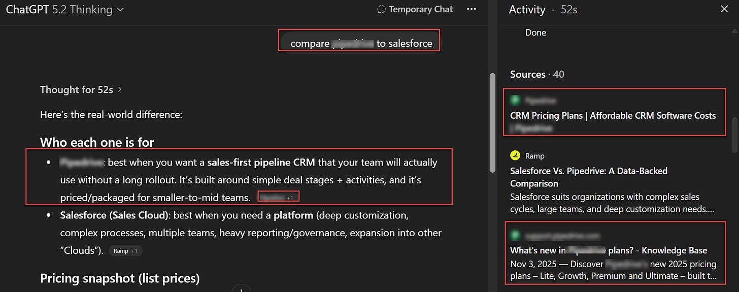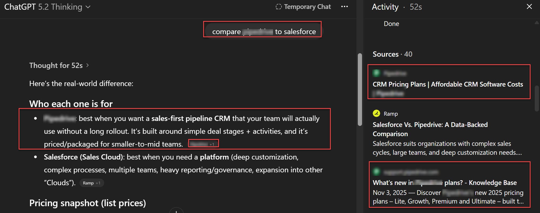 Result: LLMs picked it up fast, and we took over the answer for a high-intent query.