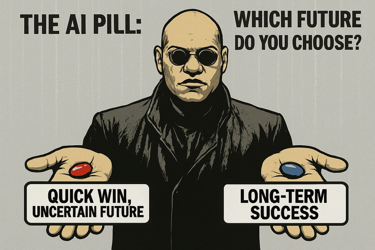 Blue pill: you invest in people, use AI as a tool, and build a future no shortcut can replicate.