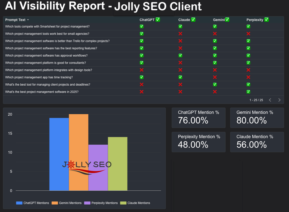 Jolly SEO has earned clients over 25,000 branded media placements. These media placements continue to drive results for brands in both traditional SERPs (Google) and the next generation of search, including ChatGPT, Perplexity, Claude, and Gemini.