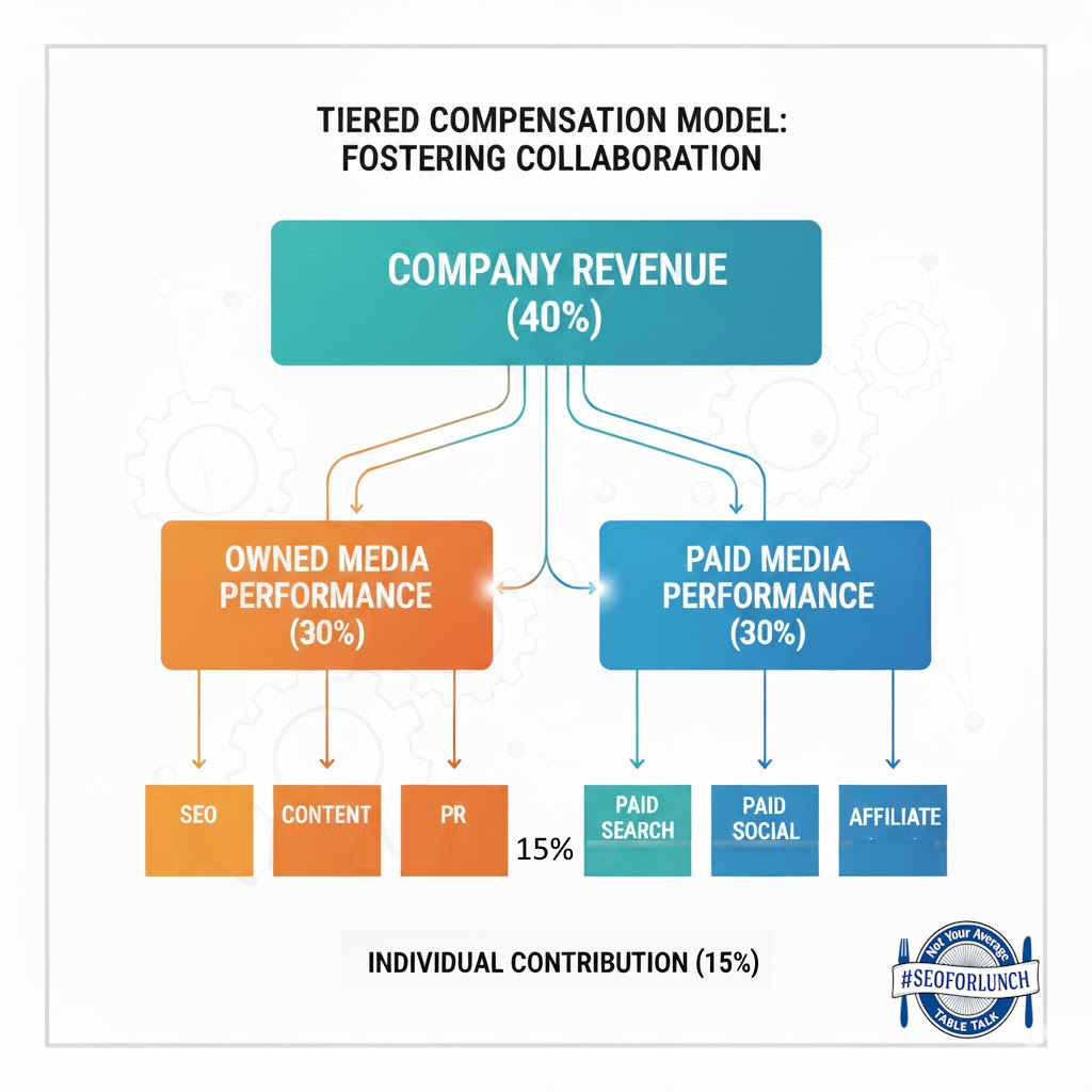 This structure can (and should) evolve with complexity — tiered rewards for individuals, teams, and the organization as a whole… but the principle remains the same. Example model below showing a 40/30/15/15 compensation breakout