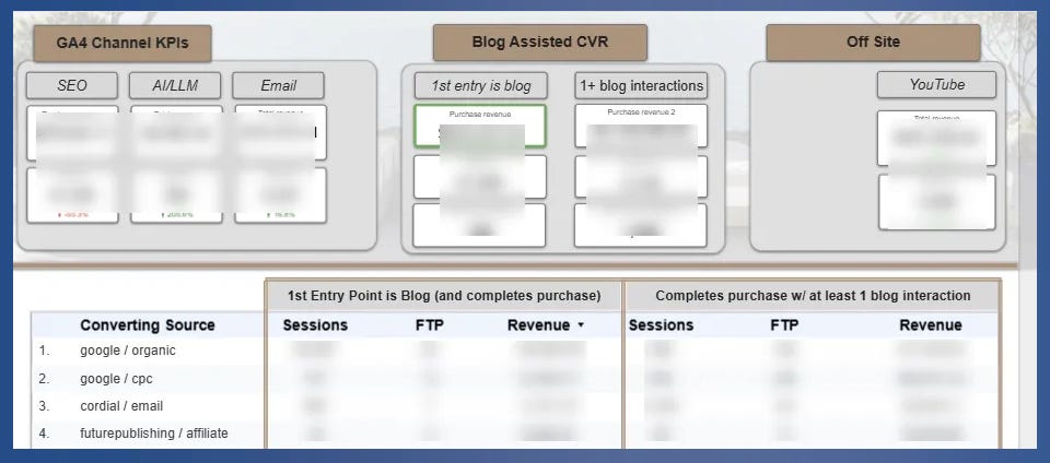 I’ve started experimenting with new “non-paid media” reporting that blends all these touchpoints. One client, for example, built a huge catalog of educational content over the years. When Google’s changes hit, clicks dropped, but the brand’s broader visibility didn’t. Their audience just shifted platforms.