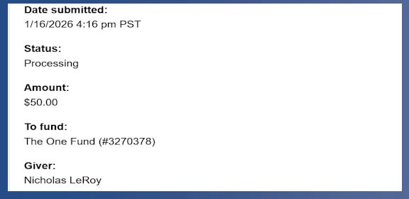 All you have to do is make your $50+ donation and take a screenshot of your confirmation screen.